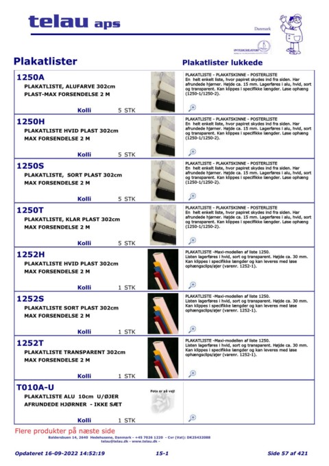 1250H PLAKATLISTE - PLAKATSKINNE - POSTERLISTE